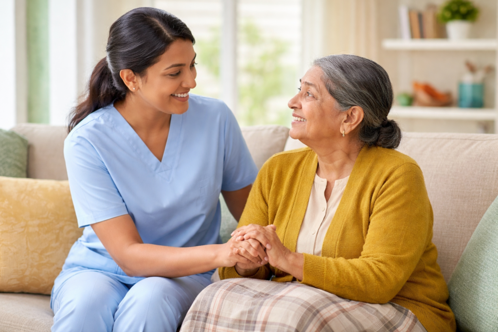 Medical care, delivered at home. Professional nursing support ensuring comfort, recovery, and medical supervision without hospital visits.